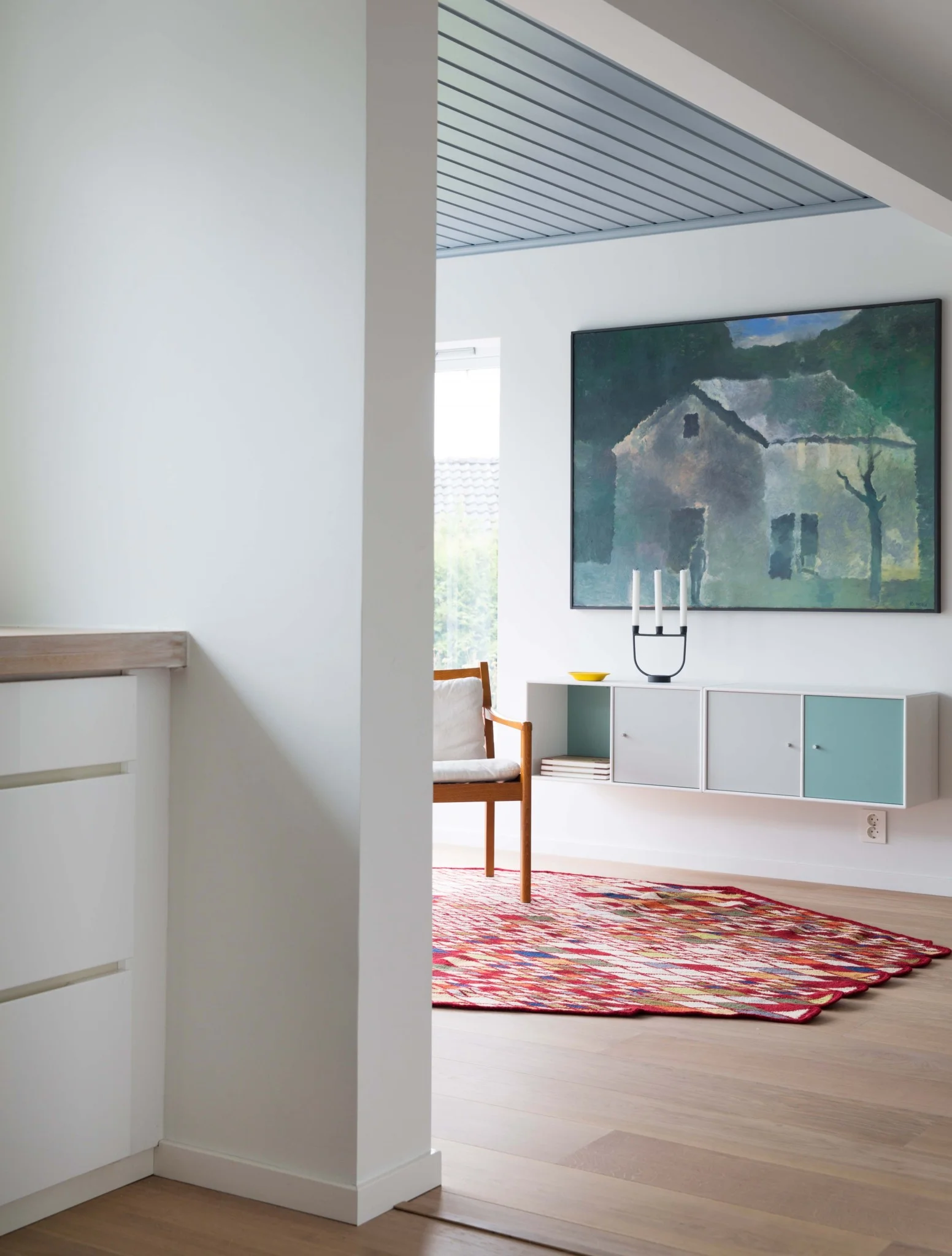 Interiørarkitektene Anne-Linn Nyfelt og Merete Strand, står bak de spesialtilpassede løsningene og de fine sonene i dette renoverte 80-talls-huset på 200m2 på Nøtterøy. All den fine kunsten hadde godt med plass, men huset skulle strammes opp og tilpasses de som bor der, for det var i dette nabolaget de ville være.